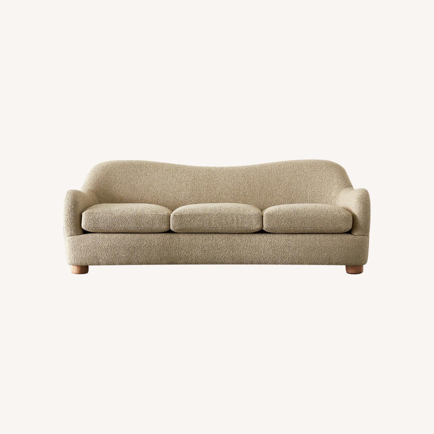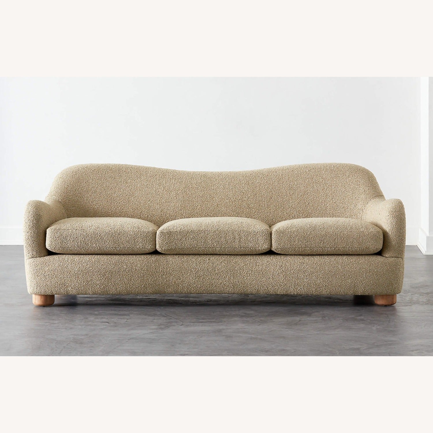 Relax and luxuriate in mid-century modern elegance with the Bacio 86.5″ Cream Bouclé Sofa, a stunning blend of timeless design and cozy comfort. Thoughtfully crafted by renowned designer Ross Cassidy, this sofa brings something special to any living space. Please note this sofa was used for ~6 months and while no significant defects were noted, there may be signs of wear.